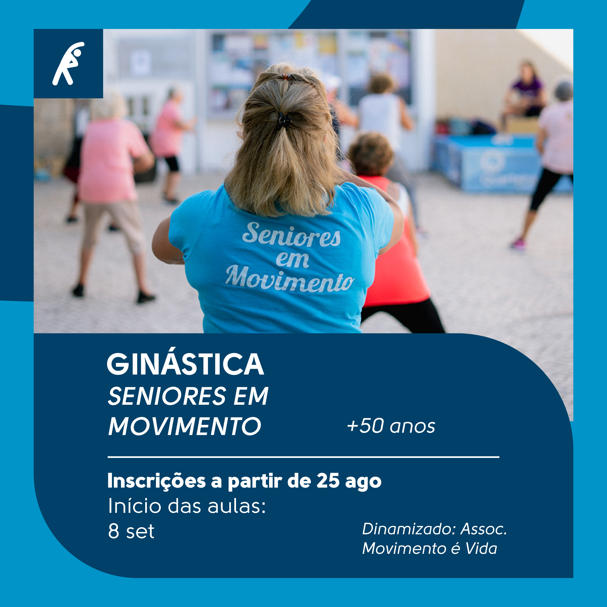 O Projeto Seniores em Movimento insere-se no âmbito do programa Longevidade com Qualidade, promovido pela Associação “Movimento é Vida”, em parceria com a Junta de Freguesia de Quarteira. Este projeto dá oportunidade à população com +50 anos de praticar exercício físico.