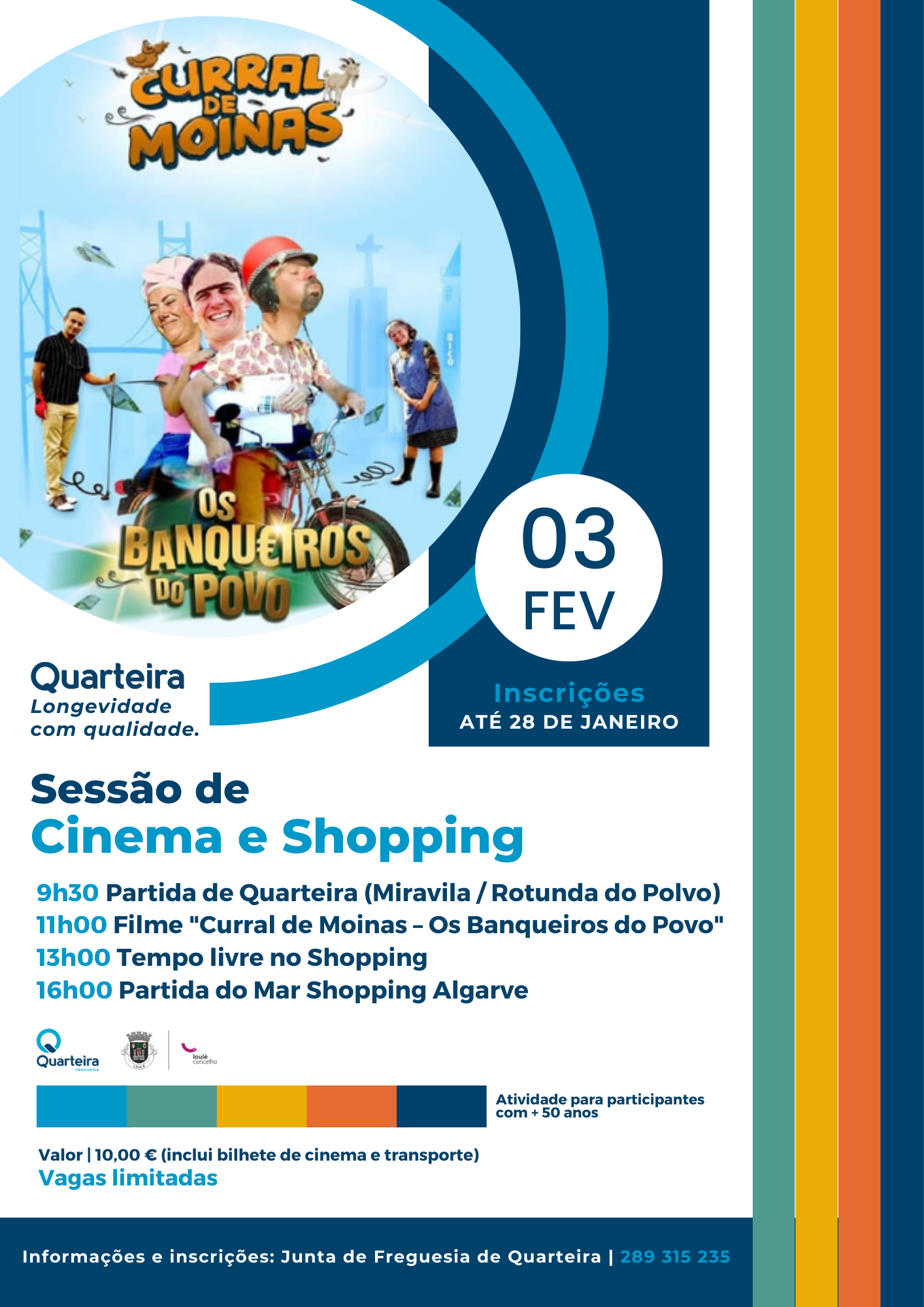 Esta atividade tem um custo de 10,00 €, onde estão incluídos o transporte e o bilhete de cinema para a comédia portuguesa "Curral de Moinas - Os Banqueiros do Povo".